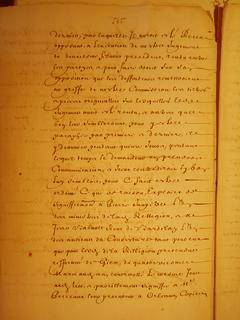 fevrier dernier, par lequel nous aurions ordonné que lesd. deffendeurs continueraient L' exercice public de lad. Relligion P R, au bout des ponts de la ville de Gien ainsy qu'ils ont Cy devant faict et font encor à présent, avec deffense au demandeur et tous autres de les y troubler ou empescher, et Icelluy demandeur condere aux despends liquides à dix Livres, Signiffié au procureur dud. demandeur Le Troisie dud. mois, Registre des baptesmes pretendus faicts en L'Eglise dud. Gien depuis Le commencement de septembre 1590, Jusques en febvrier 1606, au pied duquel est Un acte comme ledict Registre aurait esté remis au greffe du Baillage dud. Gien le douziesme avril 1607, signé de Mahiet escript Intitulé articles Présentés à Sa Majesté touchant la Liberté et Conservation des Eglises Refformées de Ce Royaume, de la part des Esglises estant ès provinces de Berry, Orleans Note paléographique: tr (troubler, registre) pourrait être confondu avec L. | |